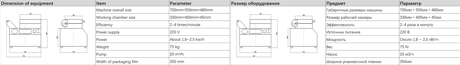 It is a kind of automated forming and vacuum skin pack equipment. Apply to food packaging for restaurant, shop, supermarkets, household, and food processing plants. It can be used for frozen, cold or fresh food, as well as any product which can be put in a container, such as microwave food, preserved foods, cold/hot food, agriculture products, dry food, cosmetics, medicine, or plastic items, and especially suit pack top grade products such as meat, seafood, fish, codfish, salmon, shrimp, steak, sausage, etc. It can maintain the freshness, aroma, color and taste of natural products.