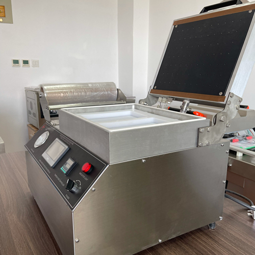 Vacuum skin packaging Machine, in short known as VSP, which is used vacuum sealing between the transparent vacuum film and the chassis. The skin packaging uses vacuum suction to shape the product paste on the cardboard (or bubble paper or other bottom plate). The transparent skin film is heated to softness and then cover on the product. It can keep the products natural color and fresh, own double effect of foods freshness and perfect visual display effect (strong three-dimensional sense).